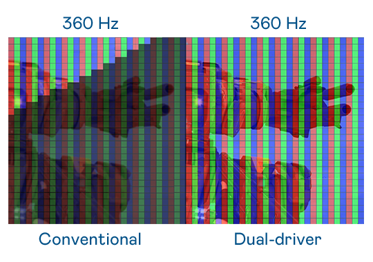 G22恒峰双向驱动技术能在更短时间内,藉由在画面X轴两侧同步补足电压强度,并在画面 Y 轴经 Dual-Driver 精密运算预判驱动,使画面中每个画素能在更短时间内提供足够的液晶驱动电压,让萤幕上每个画素显示出正确的颜色。
